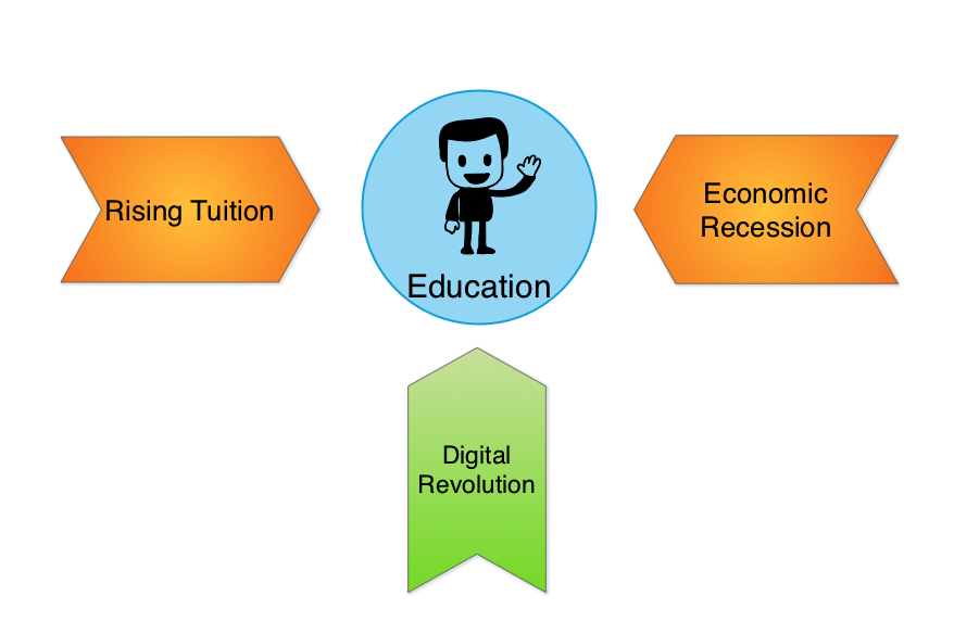 Since at least WWII, a university education has been synonymous with the creation of untold wealth and has helped develop generations of leaders, executives and entrepreneurs. Three tectonic shifts, however, have recently combined to create the perfect storm and are threatening to upend what has been considered one of the safest and most hallowed industries in the world.